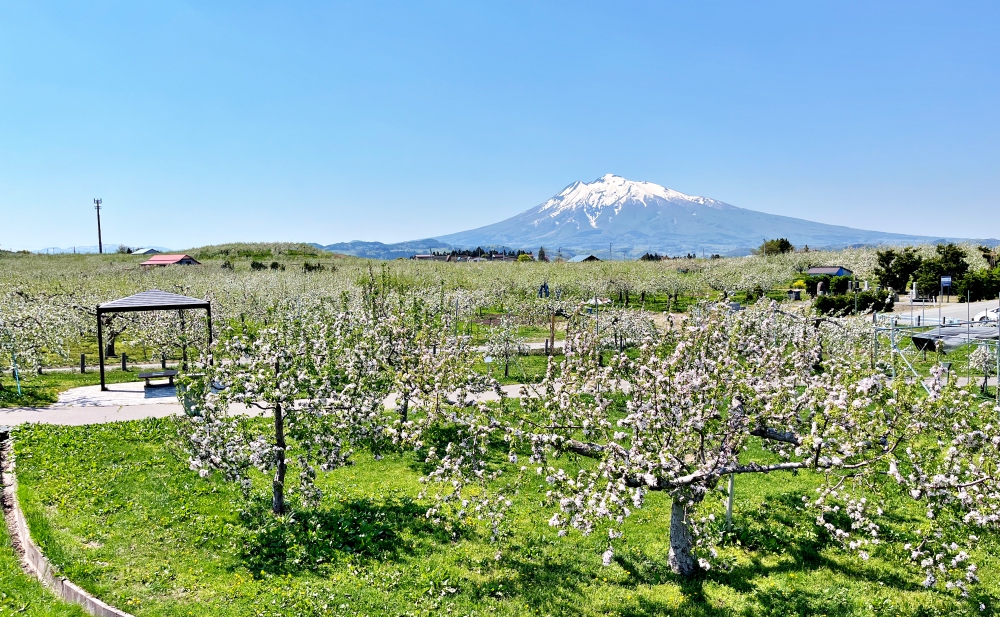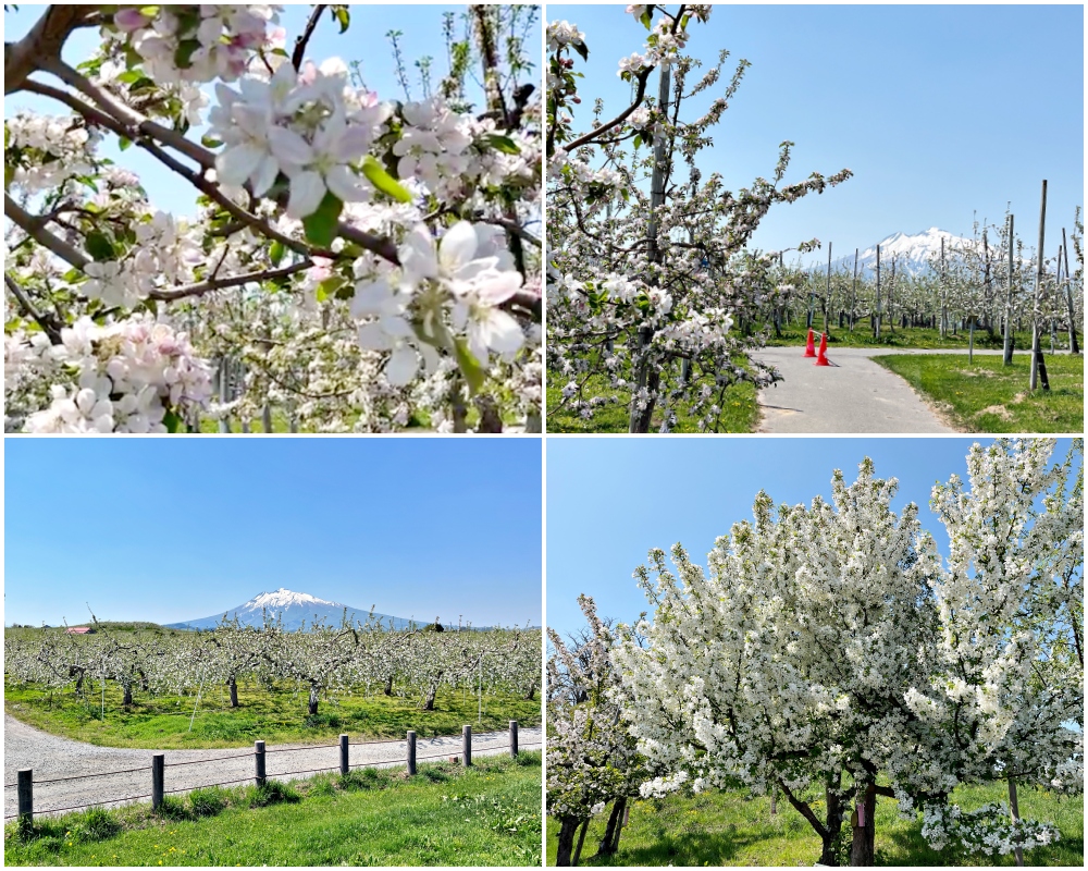 คุณเคยเห็นดอกแอปเปิ้ลมาก่อนไหม? สวนแอปเปิ้ลฮิโรซาคิ (弘前りんご公園 Hirosaki ringo kōen) มีต้นแอปเปิ้ลราว 2,300 ต้นและระหว่างฤดูใบไม้ผลิคุณสามารถเพลิดเพลินไปกับภาพของต้นแอปเปิ้ลที่มีดอกกับพื้นหลังที่น่าทึ่งของภูเขาอิวาคิที่ปกคลุมไปด้วยหิมะในระยะไกล เปรียบเทียบกับต้นซากุระ ต้นแอปเปิ้ลเตี้ยกว่ามากแต่ดอกของมันหนาแน่นมาก ทำให้กิ่งหนึ่งกิ่งมีดอกจำนวนมากบาน