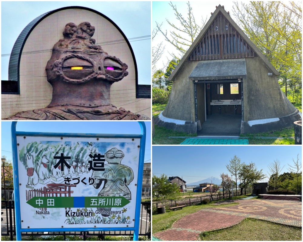 จากสถานี Mutsu-Tsuruda นั่งรถไฟสาย Gono Line ไปยังสถานี Kizukuri (木造駅) เมื่อคุณออกมานอกสถานี มองดูอาคารสถานีให้ดีและกล่าวคำทักทายกับ ชะโคจัง (Shakochan しゃこちゃん)!