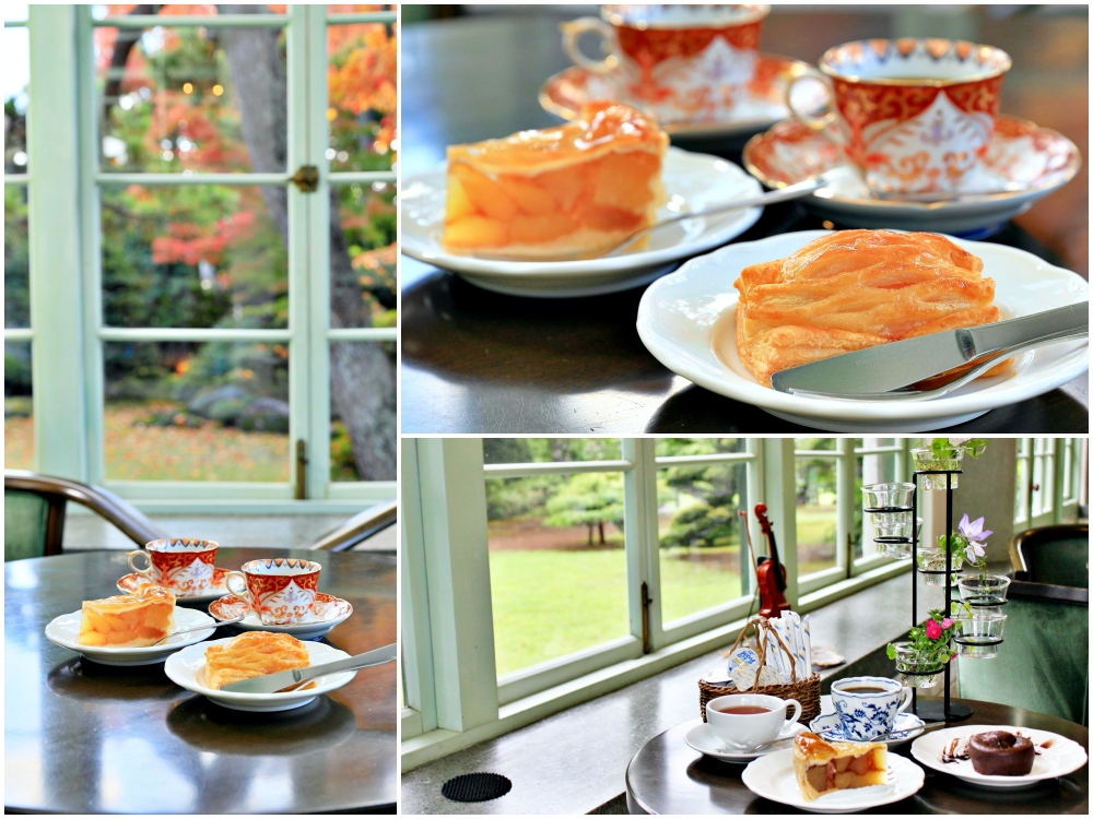 หนึ่งในสถานที่ที่มีเอกลักษณ์มากที่สุดที่จะเพลิดเพลินไปกับพายแอปเปิ้ลก็คือ ห้องชาไทโชโรมัน (大正浪漫喫茶室Taishō Roman Kissashitsu) ตั้งอยู่ที่มุมของบริเวณสวนอนุสรณ์ฟุจิตะ ด้วยสถาปัตยกรรมสไตล์ตะวันตกและหน้าต่างสูงมองไปเห็นสวน คาเฟ่นี้เป็นสถานที่ที่ยอดเยี่ยมที่จะหยุดพักหลังจากการเดินมาทั้งวัน ชิ้นพายแอปเปิ้ลอุ่นๆด้วยก้อนชิ้นแอปเปิ้ลหนา กลิ่นของชินนามอน เปลือกที่เป็นชั้นๆ ชาผ่อนคลายที่เสริฟมาในถ้วยดีไซน์สวยงาม ช่างเป็นวิธีการใช้เวลายามบ่ายที่ยอดเยี่ยมอะไรเช่นนี้