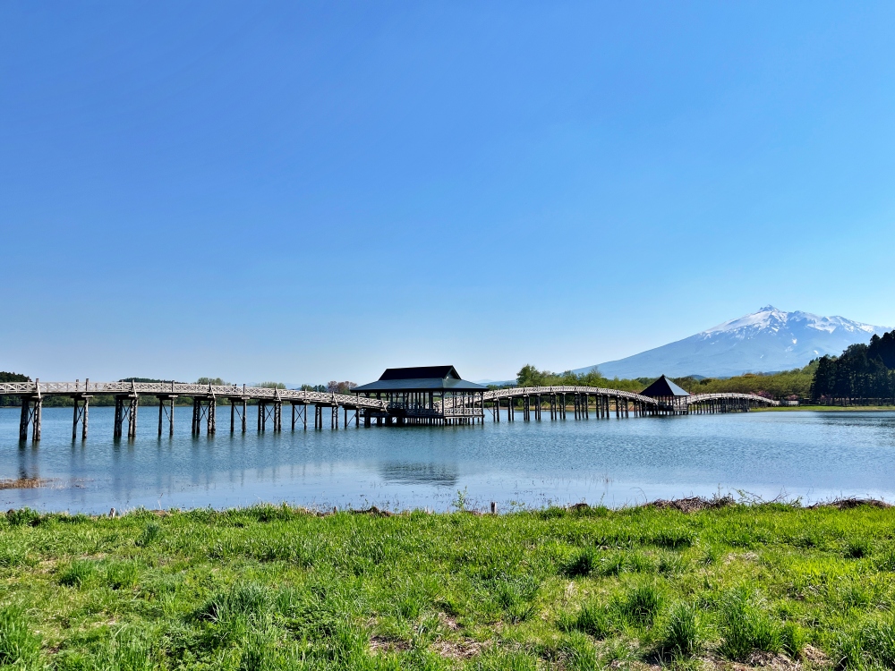 พาดผ่านทะเลสาบทซึการุฟูจิมิที่สงบเงียบเป็นสะพานไม้ที่น่าทึ่งยาว 300 เมตร สะพานทซึรุโนะไม “ทซึรุ” หมายถึง “นกกระเรียน” ในภาษาญี่ปุ่น นกที่เกี่ยวเนื่องกับชีวิตอันยืนยาว และ“ทซึรุโนะไม” หมายถึง “การเต้นรำของนกกระเรียน” กล่าวกันว่า 3 ส่วนโค้งอันสง่างามของสะพานเหมือนกับนกกระเรียนที่กำลังบินและอำนวยพรให้ผู้มาเยือนมีชีวิตที่ยืนนาน
