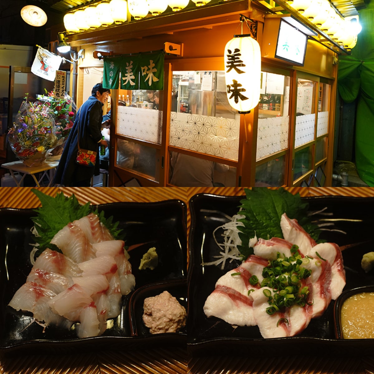 ร้านอุมิ โน ซาชิ “มิมิ” Umi no Sachi MIMI (海の幸「美味」). (เครดิตรูปภาพ: มิโรคุ-โยโกโจ Miroku-Yokocho )