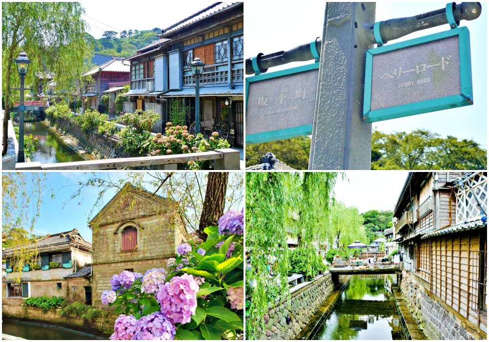 ที่สุดทางถนนเพร์รีคือสวนชิโมดะ ซึ่งจะสวยเป็นพิเศษในช่วงเทศกาลไฮเดรนเยียทุกปีเดือนมิถุนายน ดอกไฮเดรนเยียกว่า 3 ล้านดอก คุณทราบหรือไม่ว่าสีของดอกไฮเดรนเยียจะเปลี่ยนไปตามความเป็นกรดเป็นด่างของดิน ดินที่เป็นกรดจะให้ดอกสีน้ำเงินขณะที่ดินที่เป็นด่างจะให้ดอกสีชมพู สวนนี้ตั้งอยู่บนเนินเตี้ยๆที่สามารถมองเห็นท่าเรือชิโมดะ