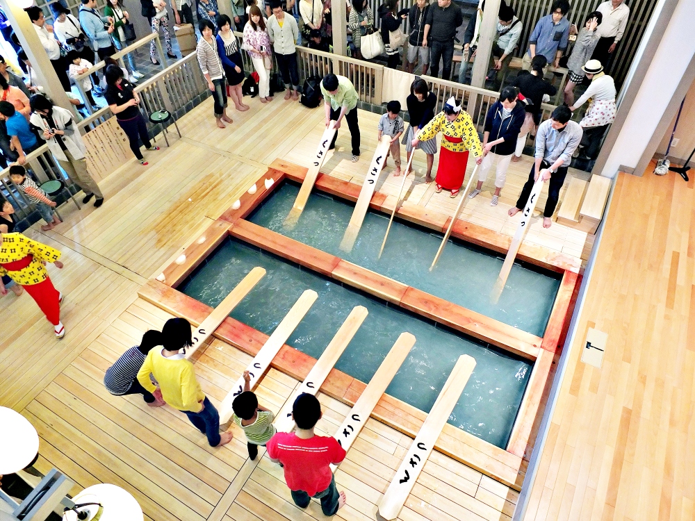 ยุโมมิคืออีกวิธีหนึ่งในการหล่อเย็นน้ำแร่ ซึ่งเป็นวิธีการเก่าแก่กว่า 100 ปี โดยทำการตีน้ำด้วยไม้พาย วิธีการตีน้ำนี้จะทำให้อุณหภูมิลดลงเหมาะสมกับการแช่ออนเซ็นโดยไม่ต้องเติมน้ำเย็นเพื่อเจือจางน้ำแร่ ซึ่งน้ำเย็นจะไปเจือจางแร่ธาตุและลดคุณภาพการรักษาโรคของน้ำแร่ ที่นี่มีการแสดงยุโมมิโชว์ให้นักท่องเที่ยวชมด้วย หากคุณไปได้ถูกเวลาคุณอาจจะได้ร่วมกิจกรรมตีน้ำแร่เองด้วย