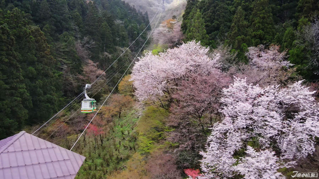 ขณะนั่งอยู่ในกระเช้า อย่าลืมมองวิวด้านล่าง เพราะในช่วงฤดูใบไม้ผลิ ดอกซากุระหลากหลายสายพันธุ์จะออกดอกเพิ่มสีสันให้กับทิวทัศน์ด้านล่าง ไม่ว่าจะเป็นซากุระภูเขา (山桜) ที่เริ่มบานในเดือนมีนาคม ซากุระที่มีกลีบซ้อนกัน (八重桜) และซากุระยาฮิโกะ (弥彦桜) ที่มีกลีบดอก 6 กลีบ ต่างจากซากุระทั่วไปที่มี 5 กลีบ และเมื่อเข้าสู่ฤดูใบไม้ร่วงก็จะเปลี่ยนเป็นสีแดงเข้ม