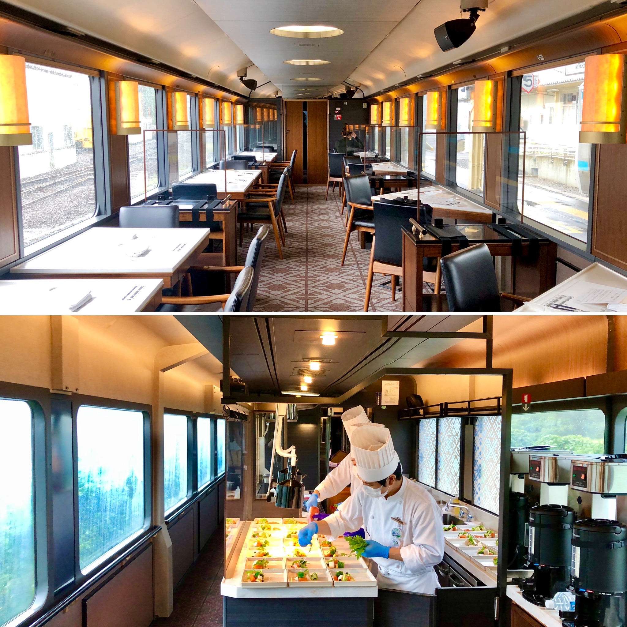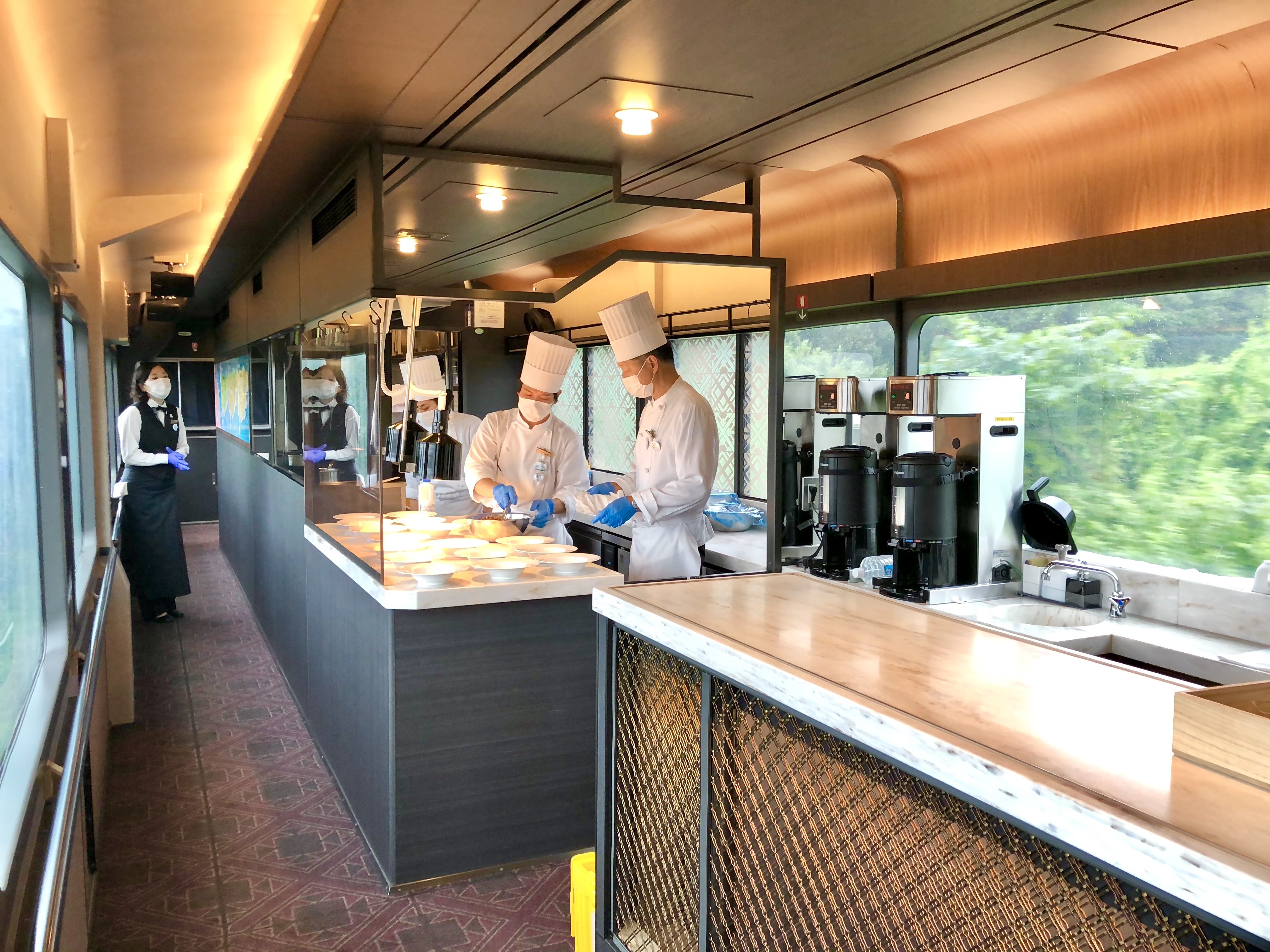 Các yếu tố địa phương được lồng ghép tinh tế, không chỉ trong thiết kế của con tàu, mà còn ở cả bát đĩa và đồ đựng thức ăn: hộp đựng món khai vị được làm từ gỗ Paulownia ở vùng Aizu, đồ gốm phục vụ món chính là của vùng Iwate hay hộp sơn mài đựng món tráng miệng là sản phẩm thủ công ở vùng Aizu. Tụi mình cũng như nhiều hành khách khác đều rất thích thú khi được xem các đầu bếp thực hiện các món ăn trực tiếp ngay trên căn bếp của tàu. Nhờ vậy, các món ăn đều còn rất “nóng hổi” khi đến tay thực khách.