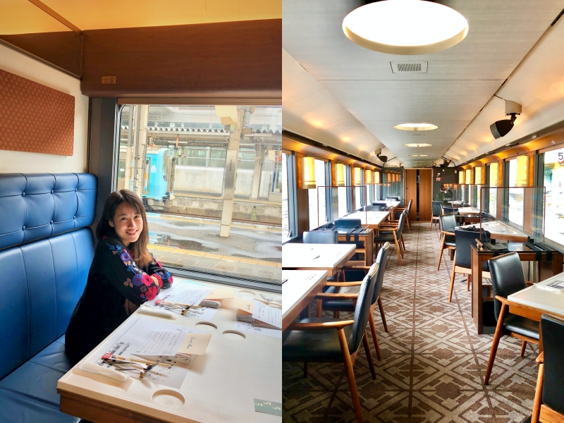 Nếu hành trình từ Hachinohe đến Kuji đem đến không gian của một nhà hàng lãng mạn với nhiều món ăn phong cách châu Âu, thì lượt về từ từ Kuji đến Hachinohe lại mang tới cho tụi mình cảm giác như đang ở trong một quán cà phê với vô số món bánh ngọt và tráng miệng thật hấp dẫn.