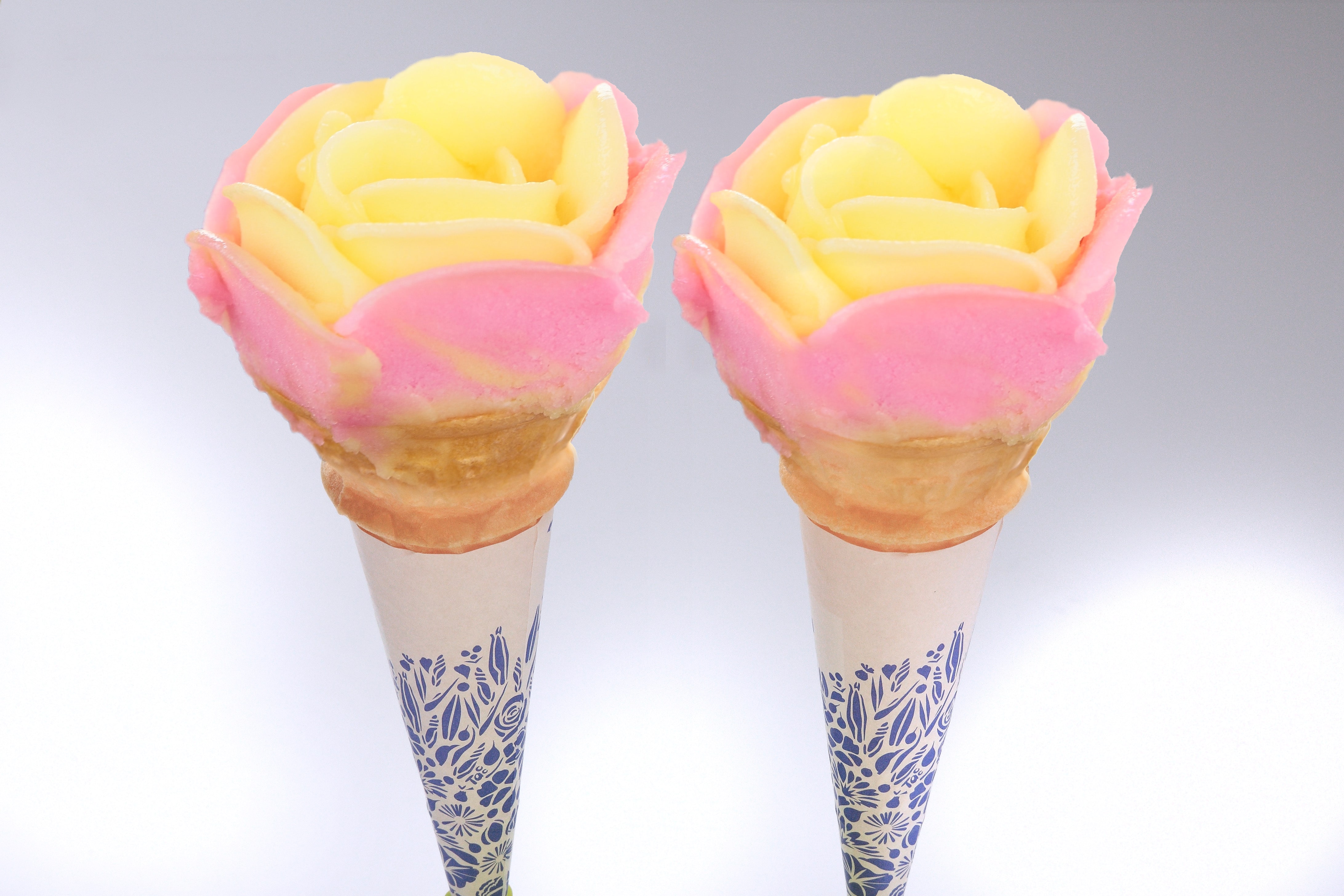 Kem Babahera được rao bán bởi những người phụ nữ cao tuổi thân thiện vào mùa hè, và được tạo hình thành một bông hoa. (Nguồn ảnh: JR East / Carissa Loh)