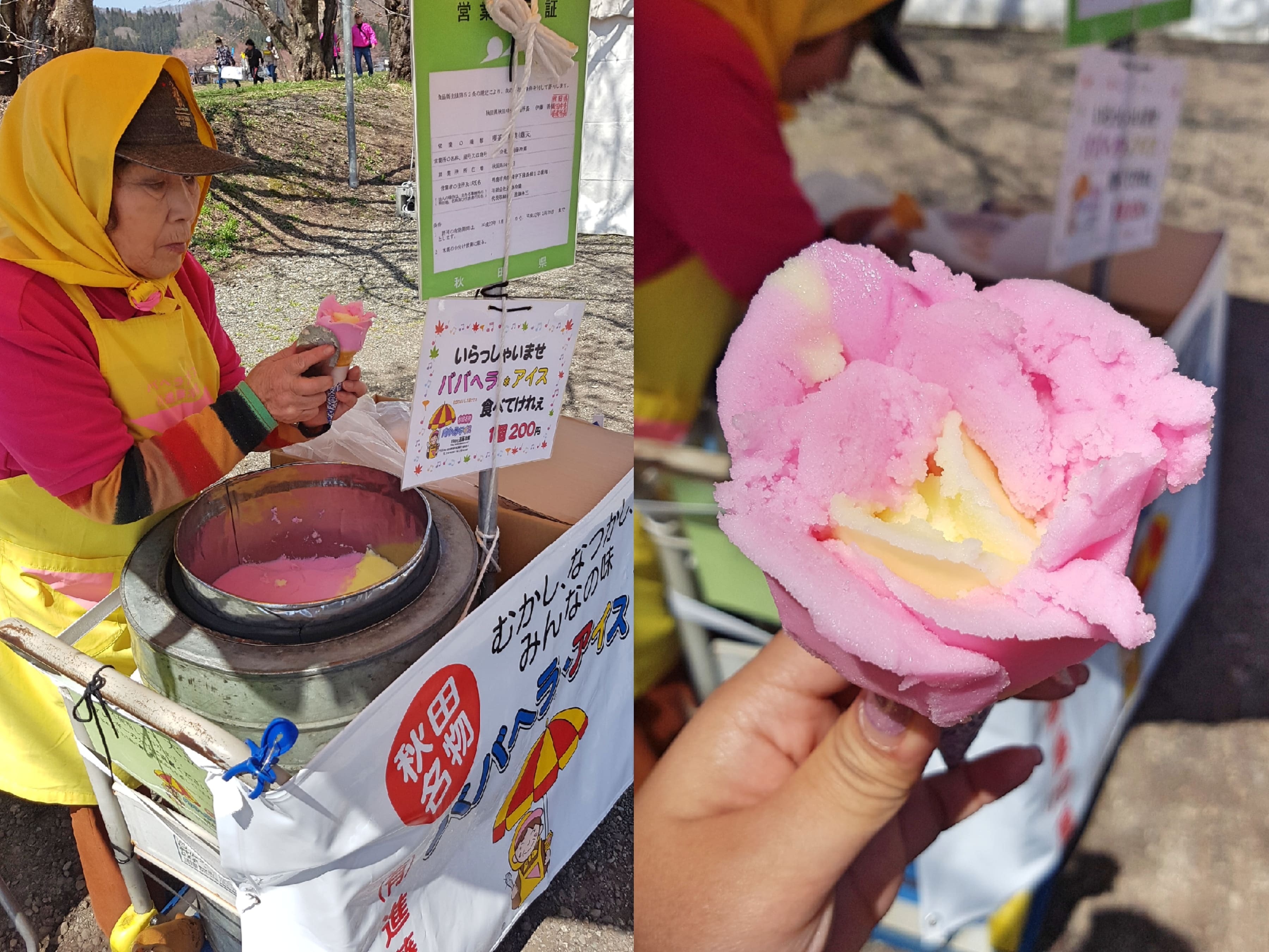 Làm thế nào để kết thúc một bữa ăn hoàn chỉnh? Tất nhiên là bằng món tráng miệng. Và còn gì tráng miệng tuyệt hơn kem - Akita có lựa chọn độc đáo của riêng mình. Kem Babahera - món tráng miệng mới lạ của Akita - đặc trưng cho mùa hè. Điều thú vị về món kem này là cách chúng được bán rong ngoài đường: những người phụ nữ lớn tuổi đẩy xe rao bán chúng, và bạn có thể nhìn thấy họ từ xa bởi bộ quần áo và chiếc ô màu hồng, vàng rực rỡ bắt mắt.