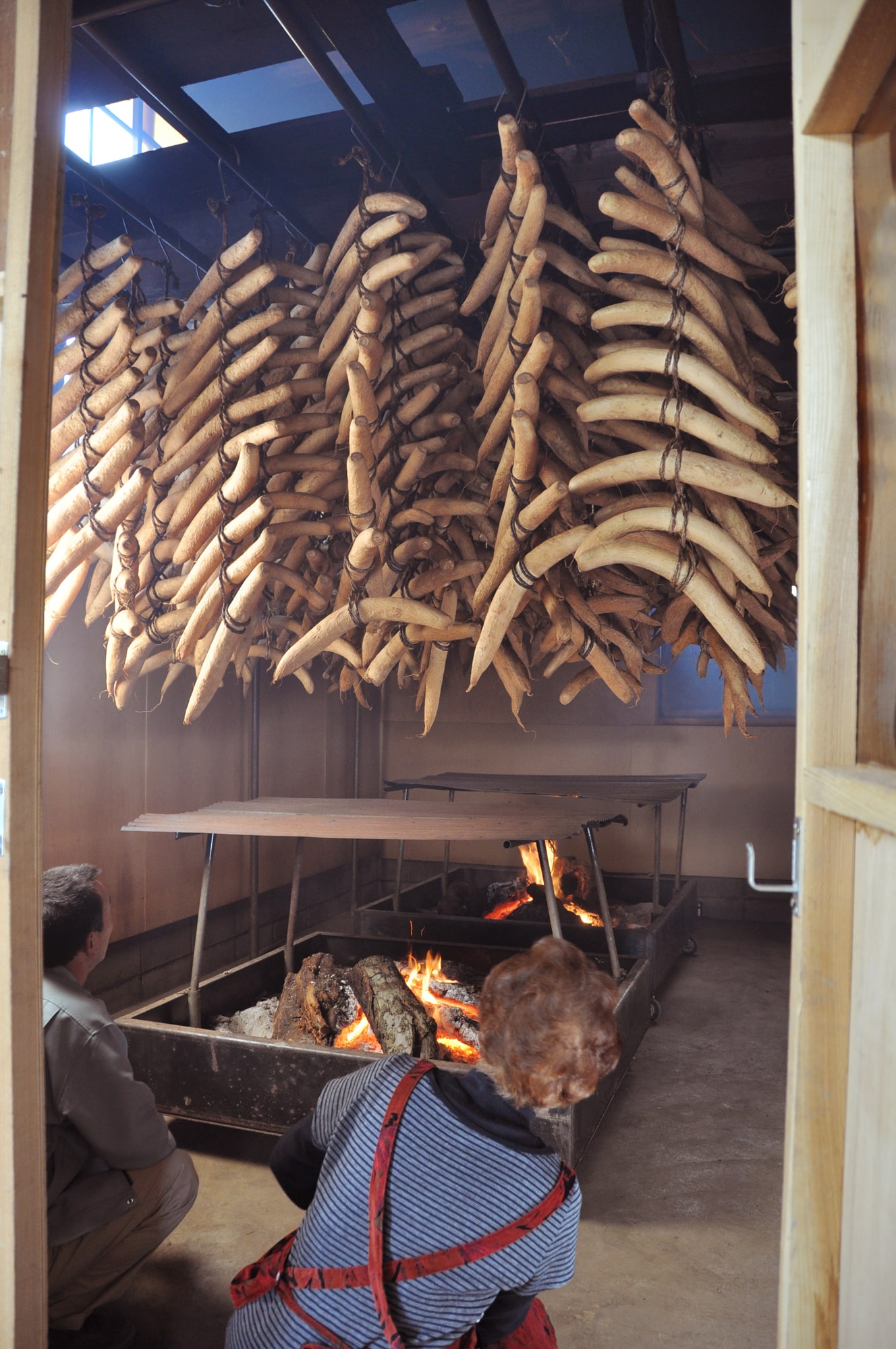 Iburi gakko được chế biến bằng cách treo củ cải trắng trên bếp lửa để hun khói, và ngâm chúng trong hỗn hợp nguyên liệu đặc biệt. (Nguồn ảnh: Tỉnh Akita)