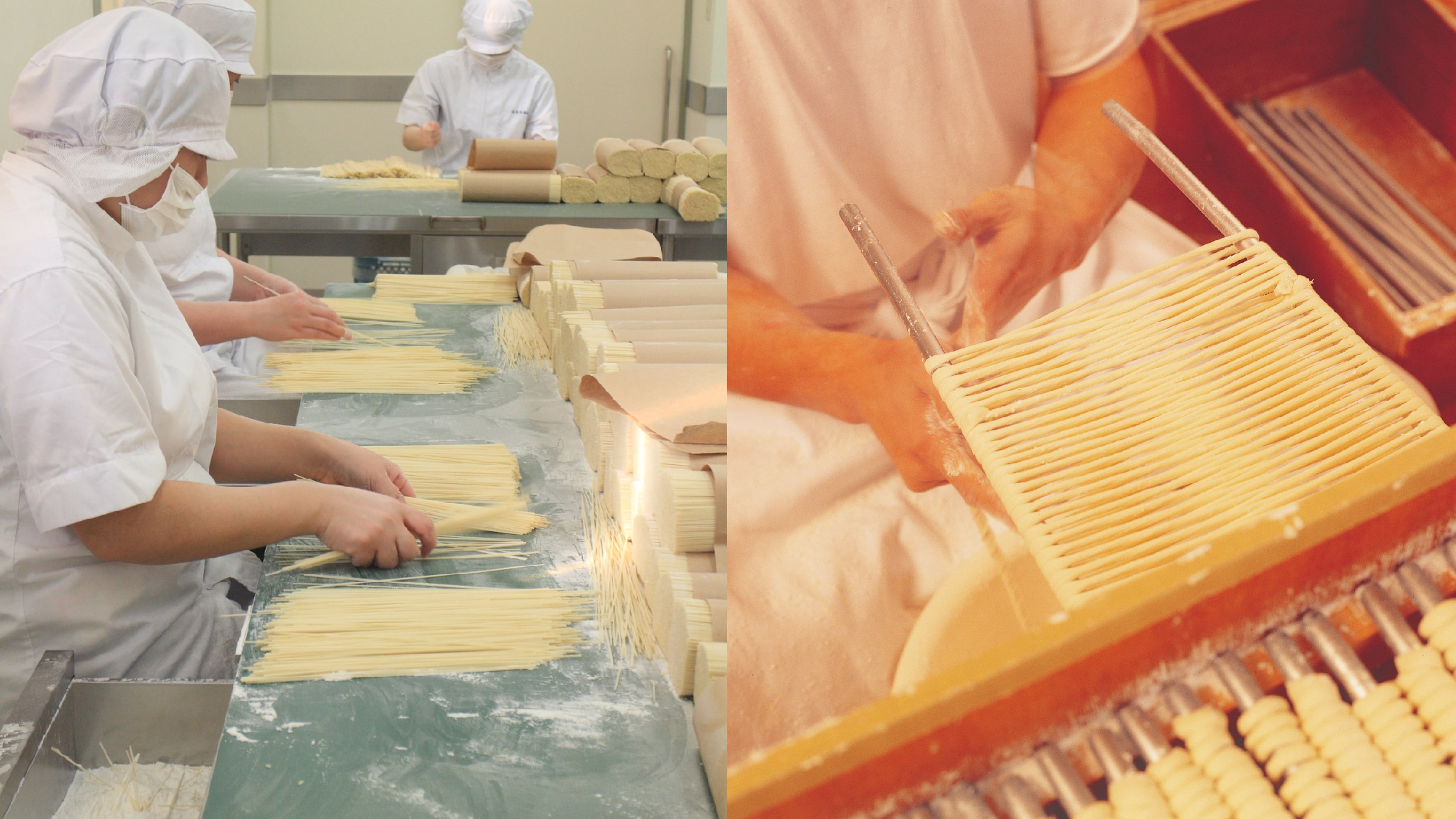 Udon Inaniwa theo truyền thống được chế biến thủ công, vì cần nhào bột bằng tay, đặt trên các thanh gỗ để kéo căng, sau đó phơi khô trong vài ngày. (Nguồn ảnh: Tỉnh Akita)