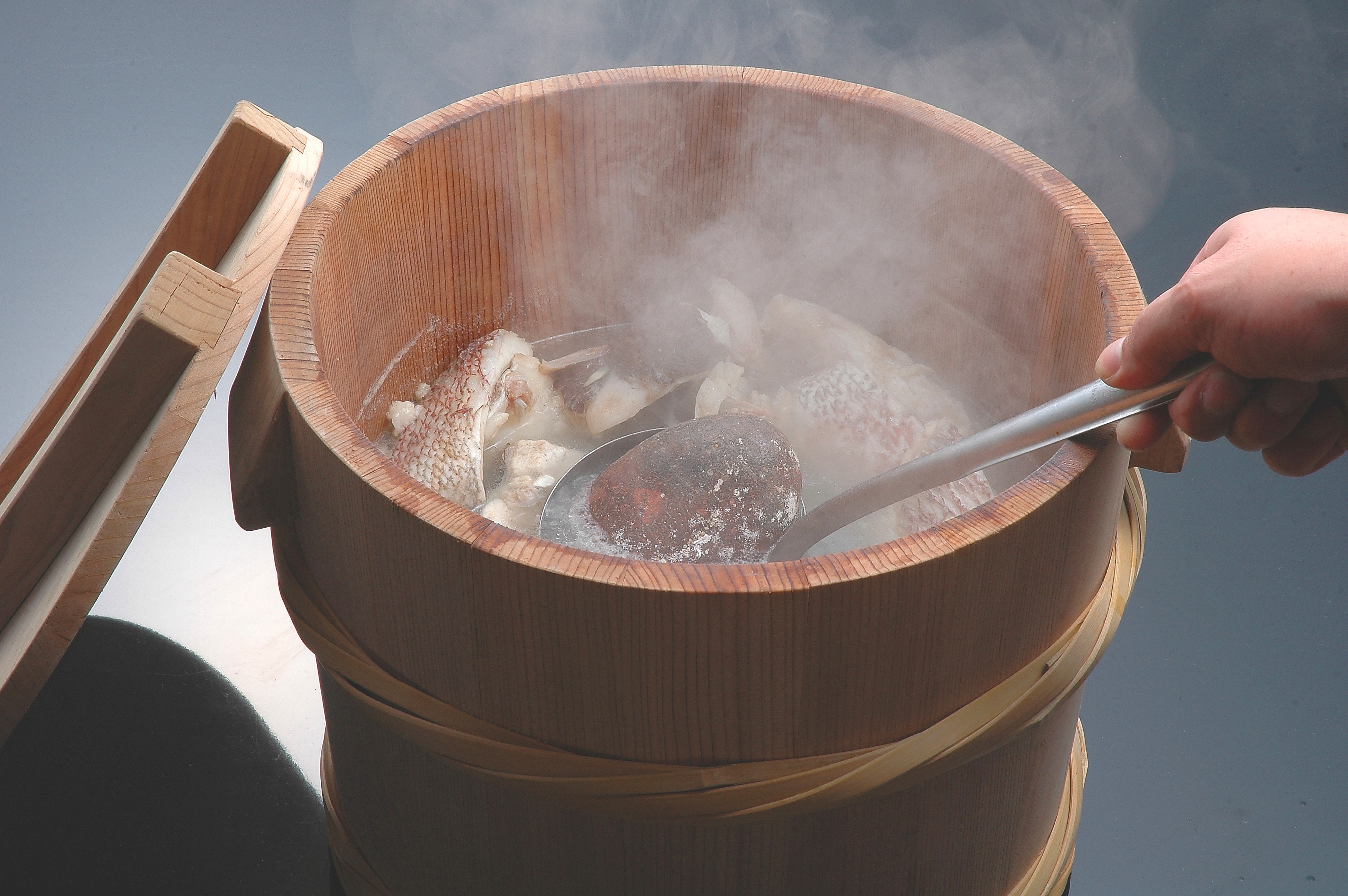 Lẩu Ishiyaki bao gồm cá và rau, cùng viên đá nóng đỏ rực để nấu các nguyên liệu ngay lập tức mà vẫn giữ được hương vị ban đầu. (Nguồn ảnh: Tỉnh Akita)