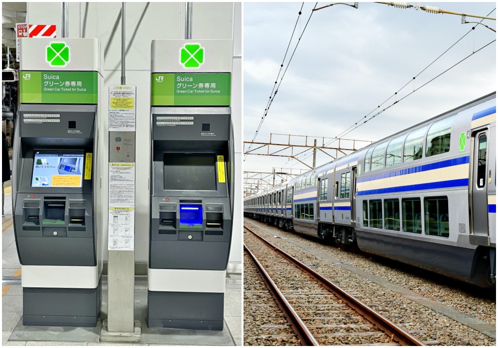 Mặc dù các vé JR East Rail Pass không áp dụng cho ghế ngồi hạng Green Car, nhưng tin tốt là bạn có thể mua vé Green Car ngay tại sân ga, thậm chí thanh toán bằng cách quẹt thẻ Suica của mình đó. Xin lưu ý rằng dù có thể dùng các thẻ IC khu vực liên quan như PASMO, Kitaca và TOICA, nhưng máy này sẽ không tiếp nhận các thẻ IC từ các khu vực không liên quan (ví dụ: ICOCA, SUGOCA).