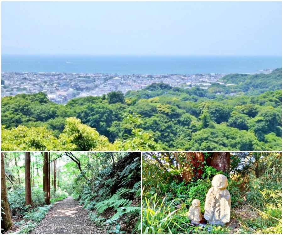 Vì ở Kamakura không có các tòa nhà cao tầng, nên bạn có thể phóng tầm mắt nhìn ra toàn cảnh biển xanh bao la, vào những ngày trời quang, bạn còn có thể thấy cả núi Phú Sĩ ở chân trời xa xa. Mất khoảng 1 - 1,5 giờ để đi hết con đường mòn này, bạn sẽ băng qua nhiều ngọn đồi, và thậm chí cả các yagura (hang mộ táng).