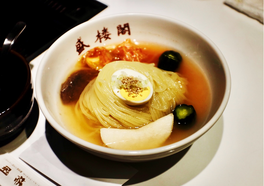 Mì reimen – mì lạnh vốn có mặt ở nhiều nơi trên khắp Nhật Bản, nhưng món mì lạnh của Morioka lại có hương vị thật khác lạ với sợi mì được làm từ bột khoai tây. Thông thường, mọi người sẽ thưởng thức mì reimen sau khi ăn thịt nướng, giúp cân bằng hương vị. Lần này bọn mình quyết định có một bữa tối thịnh soạn ở Morioka với thịt nướng và reimen tại nhà hàng Seirokaku (盛 楼閣) ngay trước ga trung tâm. Sau món thịt nướng tuyệt hảo thì cuối cùng bọn mình cũng được thưởng thức Reimen!