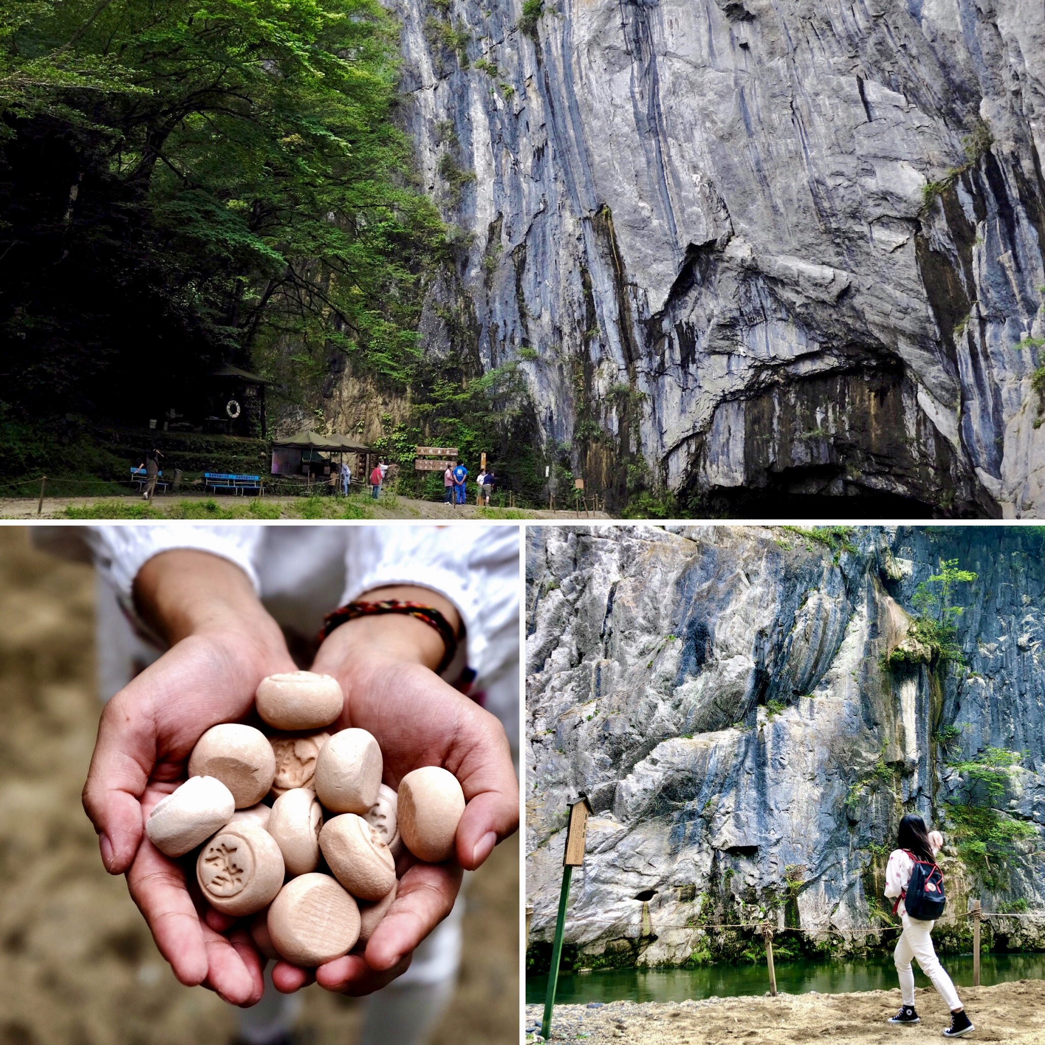 Bọn mình tới điểm trong cùng của hẻm núi này sau khoảng 30 phút đi thuyền. Du khách sẽ có khoảng 30 phút để tham quan vách đá mũi sư tử (Geibigan) và đặc biệt nhất là trải nghiệm ném undama (đá may mắn) từ bờ sông bên này vào một hốc nhỏ ở bờ đối diện. Có mười loại undama được khắc các ký tự mang ý nghĩa hạnh phúc, may mắn, tình yêu, sự giàu có … và chỉ mất 100 yên để mua 5 viên đá. Hốc nhỏ trên vách đá nhìn có vẻ không xa lắm, nhưng để ném được đá vào đây thật không dễ dàng. Đừng quên thử vận may của bạn nhé!