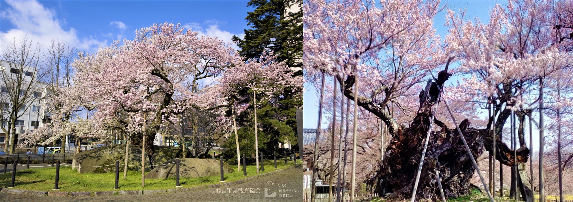 Ishiwarizakura (trái) và Yamataka Jindaizakura (phải). (Nguồn ảnh岩手県観光協会 / photoAC)