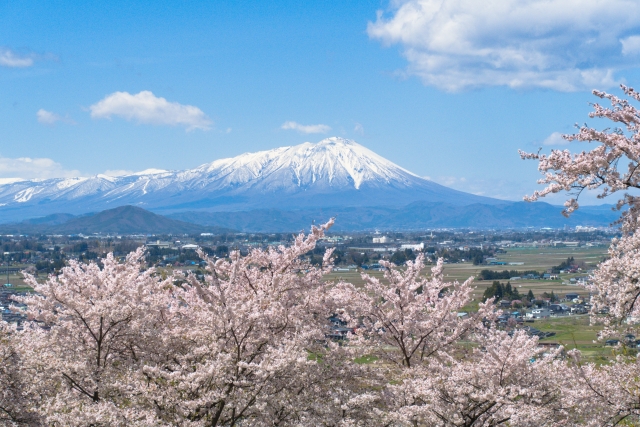 Ngọn núi hùng vĩ tạo nên một khung cảnh tráng lệ vào mùa xuân, khi đó du khách tại Công viên Sagae có thể chiêm ngưỡng ngọn núi ở chân trời xa xa, giữa hàng cây hoa anh đào dọc bờ sông. Những cây hoa anh đào này trải dài 2,8 km dọc bờ sông, và khung cảnh những hàng cây với ngọn núi phủ trắng tuyết trông như một bức tranh thơ mộng, cho bất cứ ai đến Yamagata vào mùa hoa anh đào một trải nghiệm thật khó quên.