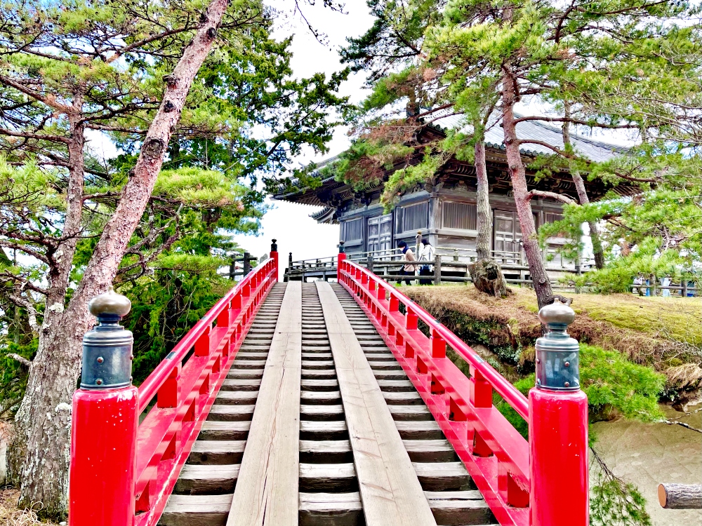Sau hành trình trên vịnh Matsushima bằng du thuyền, bọn mình quyết định đi loanh quanh ở khu vực trung tâm thị trấn trước khi lên tàu về lại Sendai. Một địa điểm không thể bỏ qua, là đảo Fukuura nối với Matsushima bằng một cây cầu sơn đỏ dài hơn 200m, nổi bật trên khung cảnh vịnh Matsushima. Hòn đảo như một công viên rộng lớn nhìn ra vịnh, là nơi lý tưởng để đi dạo dọc theo những con đường mòn trên đảo trong những ngày đẹp trời.