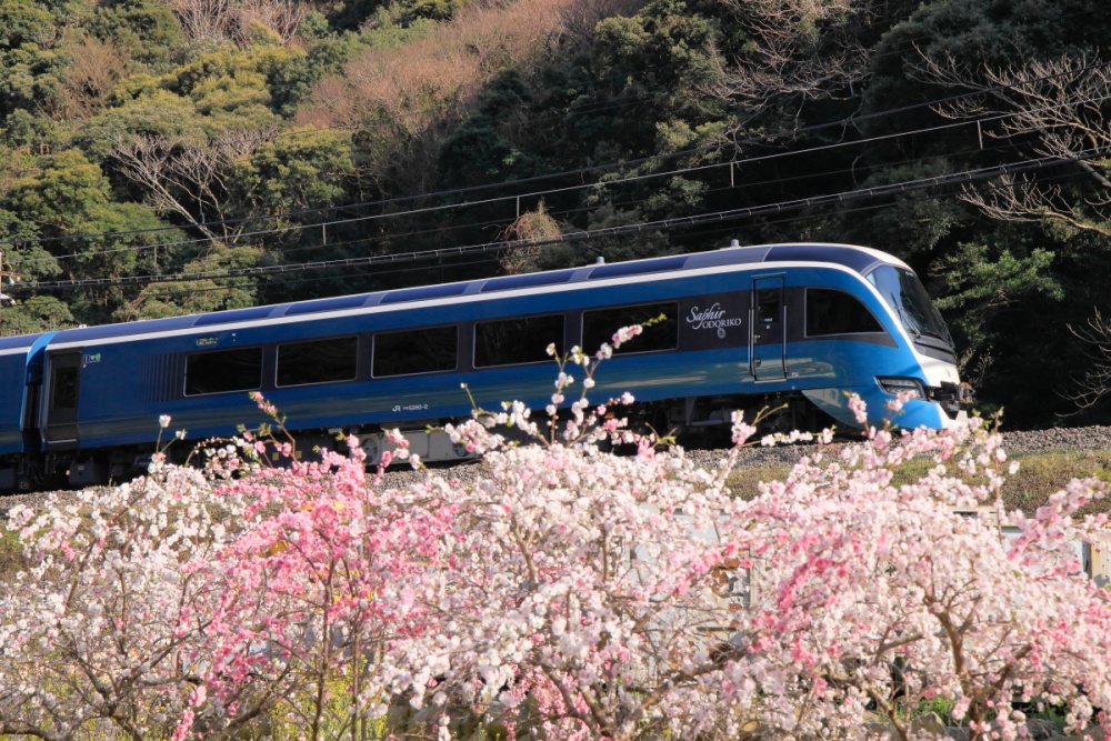 Để có một chuyến đi Izu ấn tượng khó quên hơn nữa, hãy lên tàu SAPHIR ODORIKO (サフィール踊り子 Safīru Odoriko), chuyến tàu hạng sang mới nhất của JR East. Ra mắt lần đầu vào ngày 14 tháng 3 năm 2020, SAPHIR ODORIKO chạy hàng ngày giữa Tokyo và ga Izukyū-Shimoda (伊豆急下田 駅) ở bán đảo Izu, và là một chuyến tàu tham quan hạng sang với ghế Premium Green mới toanh của JR East.