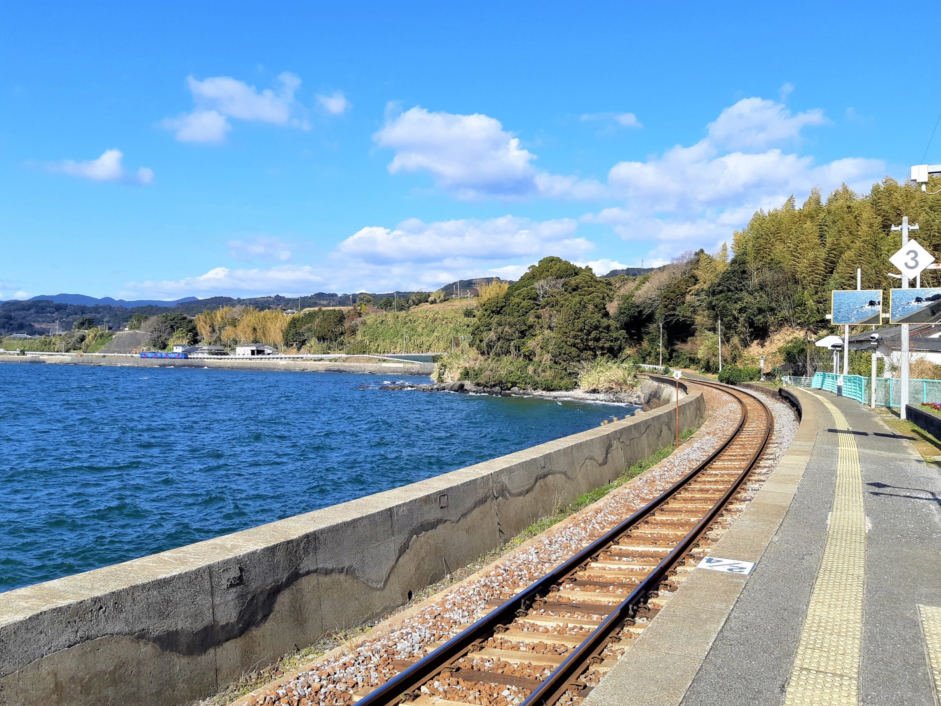 Cuối cùng, chúng mình di chuyển đến khu vực Kyushu ở phía Nam, nơi có một tuyến tàu cho hành khác cơ hội chiêm ngưỡng một khung cảnh tuyệt vời khác. Tuyến Ōmura nằm trong địa phận tỉnh Nagasaki (長崎県) và được điều hành bởi JR Kyushu, nối ga JR Haiki (JR 早岐駅) ở Sasebo với ga JR Isahaya (JR 諫早駅) ở Isahaya. Dọc tuyến đường này là khung cảnh tuyệt vời, đặc biệt dành cho những người thích ngắm biển.