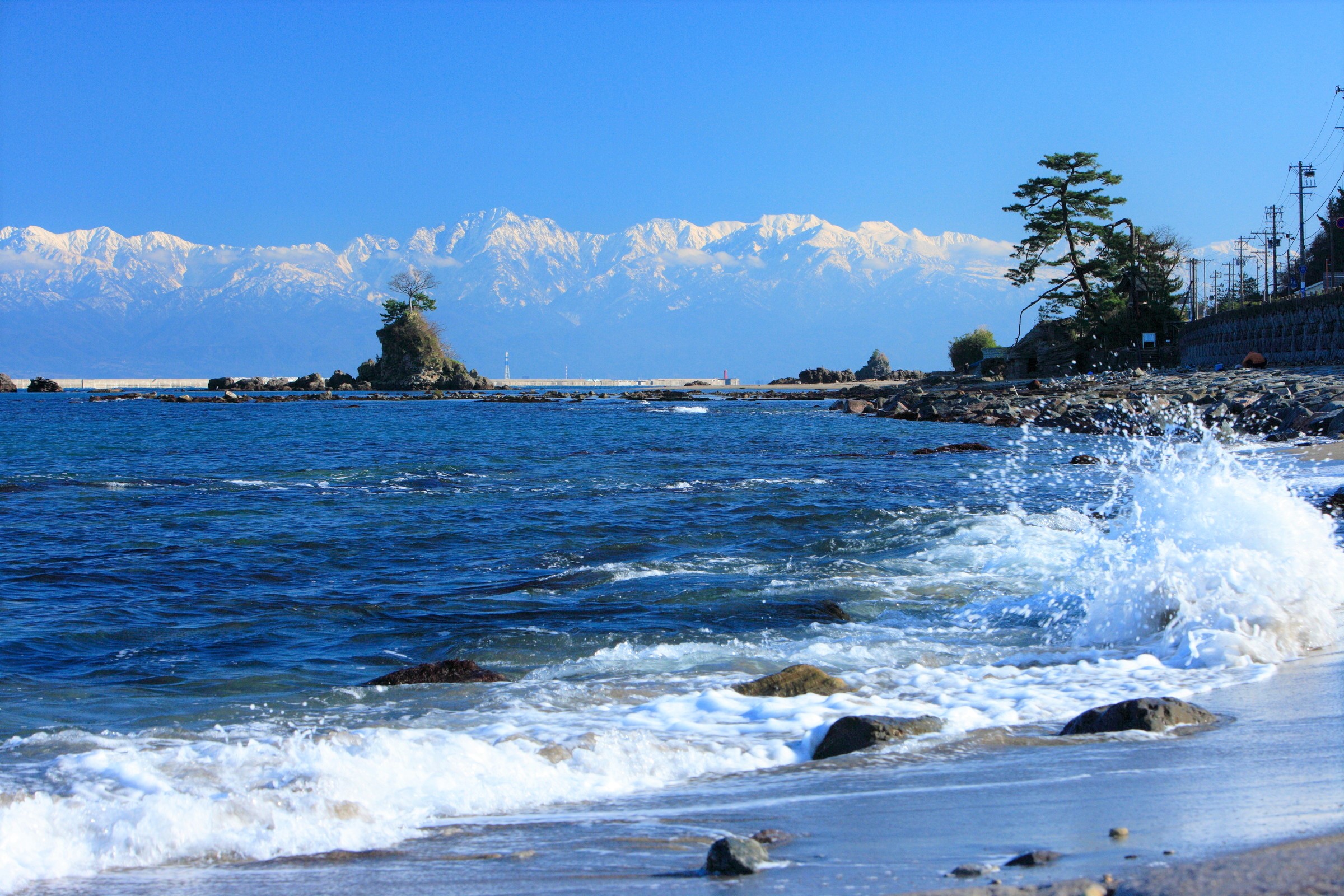 Góc cực đẹp nhìn ra dãy núi Tateyama từ bờ biển Amaharashi. (Nguồn ảnh: とやま観光推進機構)