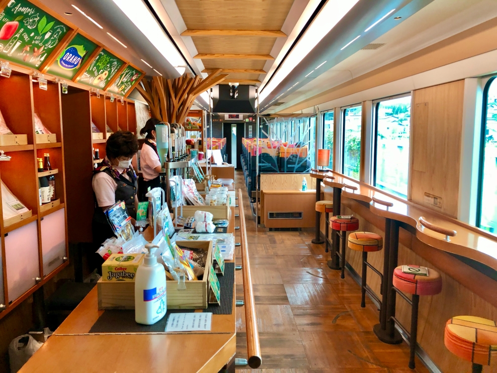 Buna cũng là đoàn tàu duy nhất có quầy bán đồ ăn trên tàu (gọi là Oraho). Tại đây, bạn có thể dùng thử rượu sake thủ công, cà phê được pha từ nước khoáng thiên nhiên từ cao nguyên Shirakami, nhiều loại đồ ngọt đặc trưng của địa phương hay cơm hộp bento cũng như các mặt hàng lưu niệm. Đối diện quầy là ghế ngồi nhìn ra cửa sổ, hướng ra biển.