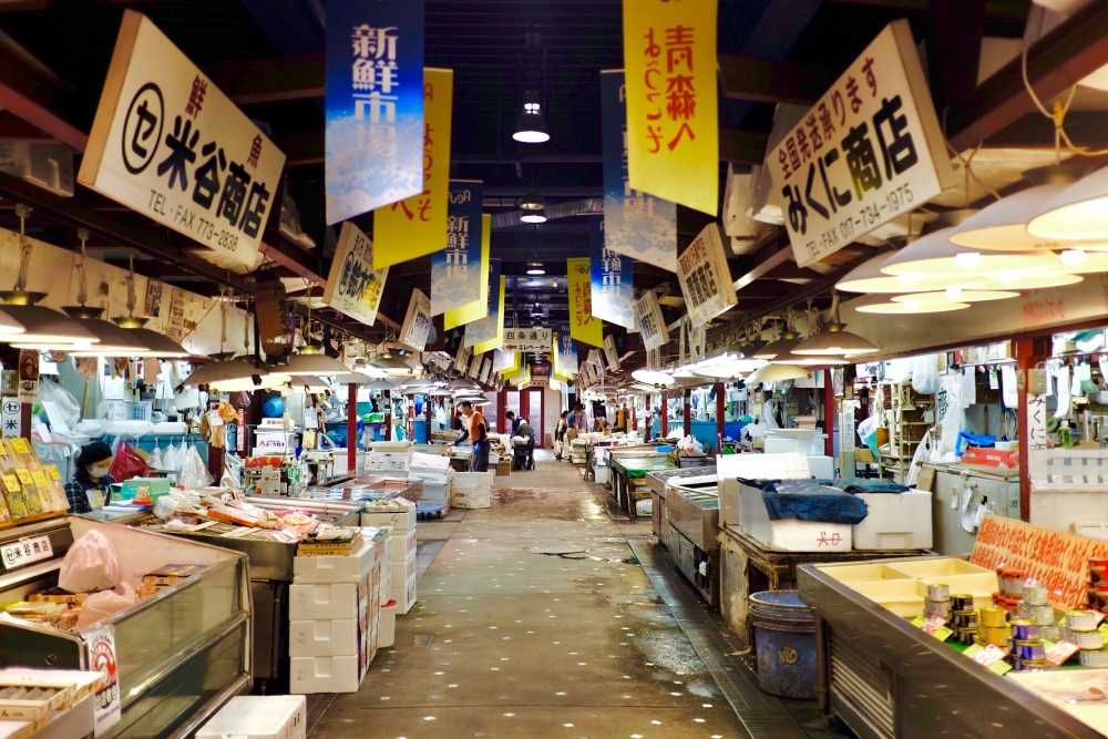 Chuyến đi lần này bọn mình có dịp ghé thăm chợ cá Auga Shinsen Ichiba (アウガ新鮮市場), nằm ở tầng hầm của trung tâm mua sắm Auga Festival City. Khu chợ có rất nhiều cửa hàng bán đủ các loại cá, hải sản, rau củ và thực phẩm chế biến. Hải sản tươi sống được nhập trực tiếp từ Cảng Aomori. Bạn có thể tìm thấy bất cứ loại hải sản nào ở đây, từ rong biển, cá ngừ, bạch tuộc sống và sò điệp nổi tiếng của Aomori.