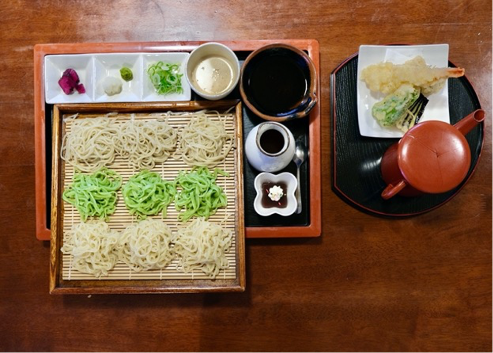 Buổi trưa ngày 2, chúng mình quyết định trải nghiệm món đặc sản nổi tiếng của Yamagata chính là mì Soba! Được làm từ kiều mạch thô, sợi soba ở đây hơi cứng hơn với vị kiều mạch hết sức đặc trưng. Món soba ở cửa hàng địa phương nơi chúng mình ghé qua được đặt trong hộp gỗ, còn sợi Soba được nhuộm bằng màu từ các loại rau củ thật bắt mắt, nhìn là đã muốn ăn ngay. Itadakimasu!