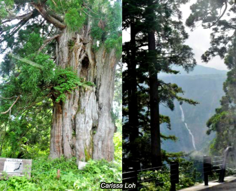 Cây tuyết tùng khổng lồ và thác nước Shomyo nhìn từ xe buýt. (Nguồn ảnh: JR East / Carissa Loh)