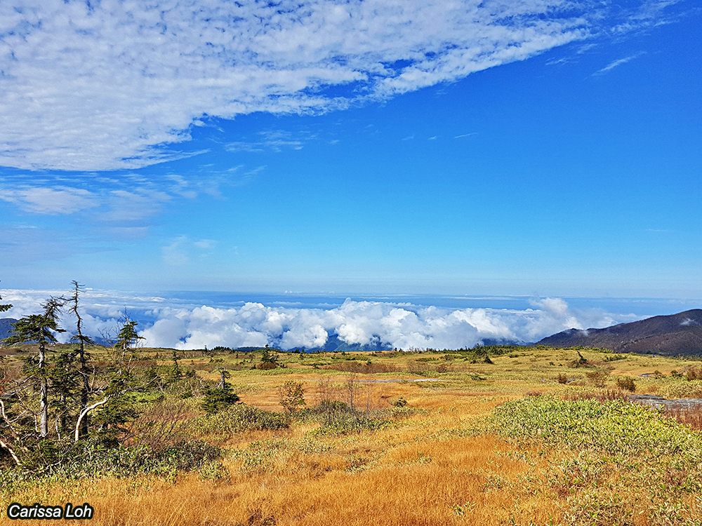 Mùa thu cỏ chuyển sang màu vàng cam và vào những ngày trời quang, bạn có thể thấy cả biển mây (雲海 unkai). Một trong những lý do mình thích leo núi cao là vì nó đem lại cảm giác như đang ở trên mây. Tại Midagahara, bạn thậm chí không cần phải leo cao để nhìn thấy biển mây, chỉ cần đi bộ một quãng đường bằng là tới!