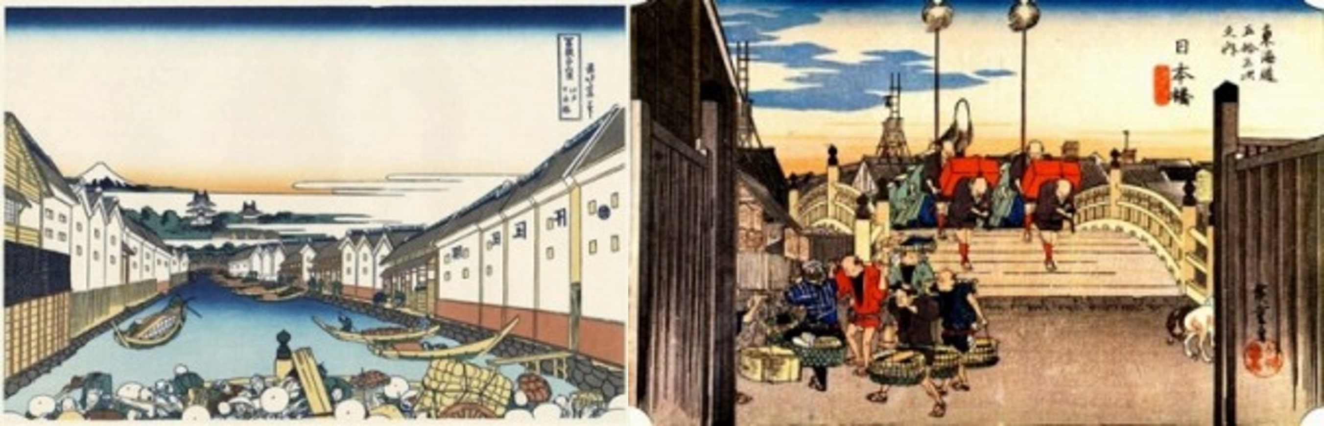 Một bức tranh ukiyo-e vẽ Nihonbashi vào thời Edo. (Nguồn ảnh: MaaYu / MEIBIS+)