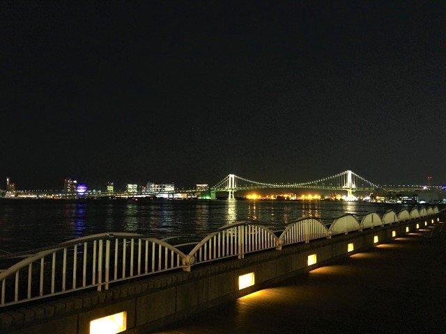 Hơn nữa, khi màn đêm buông xuống, công viên như thể biến đổi hoàn toàn, và du khách có thể nhìn thấy Cầu Rainbow (レインボーブリッジ) hùng vĩ được thắp sáng lung linh ở đằng xa. Đây là một cây cầu dây võng nối Tokyo với Odaiba (お台場), và cảnh tượng cây tỏa sáng về ban đêm nhìn từ công viên đem đến cảm giác thật kì diệu. Bạn có thể trải nghiệm một buổi tối lãng mạn tại đây, vì vậy đừng bỏ lỡ cơ hội ghé thăm nhé.