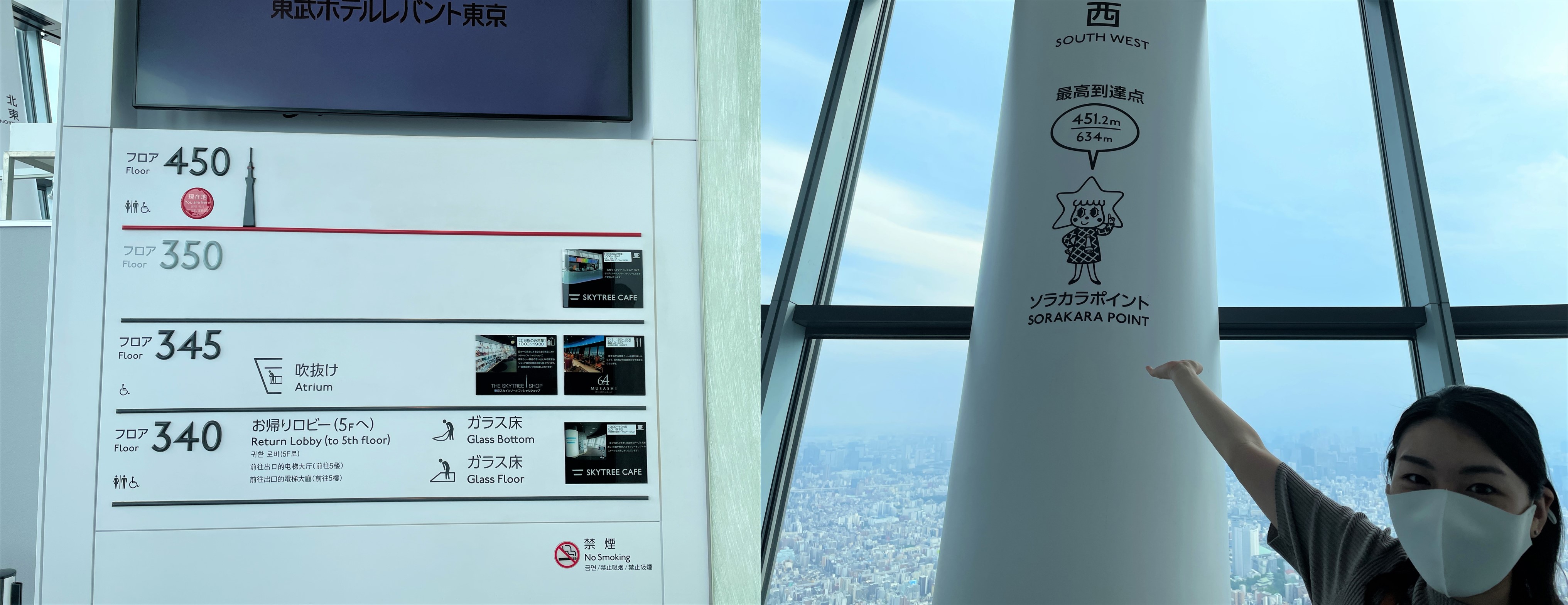 - Tầng 450: Đỉnh Sorakara (ソラカラポイント), điểm cao nhất của tòa tháp mà du khách có thể lên tham quan (451,2m)