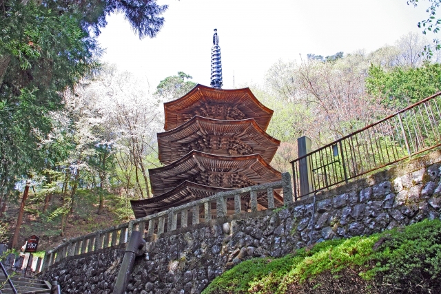 Tháp chùa này nằm trên một sườn đồi phía sau chính điện của Anrakuji, giữa rừng thông xanh tốt. Tháp chùa ba tầng hình bát giác của Anrakuji có tầm quan trọng đặc biệt, và đã được công nhận là Bảo vật Quốc gia của Nhật Bản.