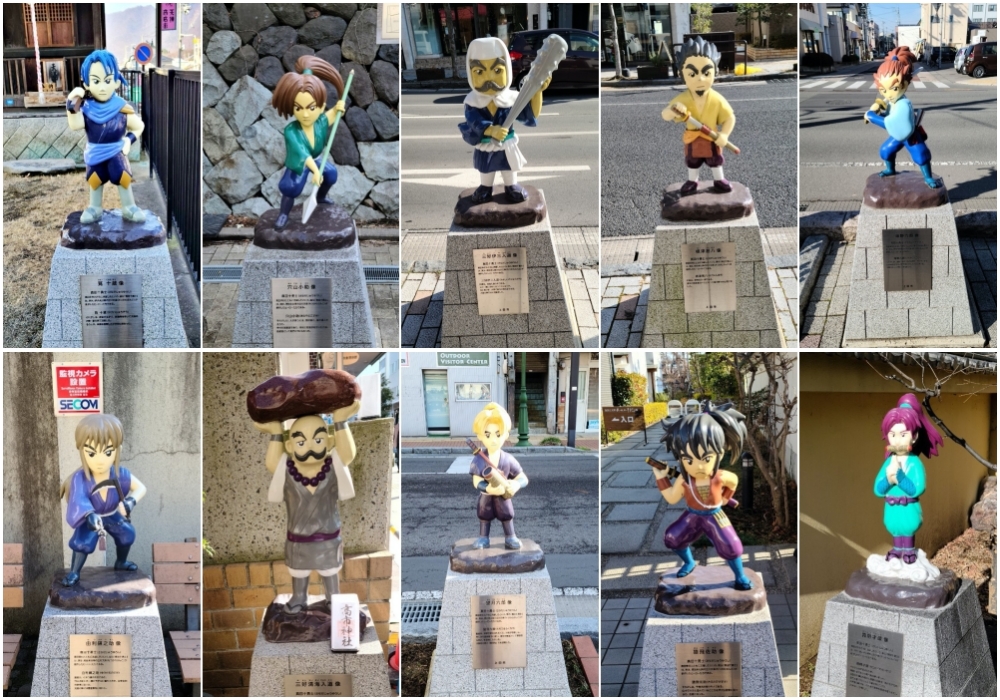 Tại thành phố Ueda, bạn có thể thấy tượng đài của Thập Dũng Sĩ Sanada nằm rải rác quanh thành phố, sao không đi bộ khám phá nơi đây và tìm các tượng đài này nhỉ? Để bắt đầu, chúng mình sẽ bật mí cho bạn vị trí một trong những tượng đài này nhé: Nó nằm ngay bên ngoài Ikenami Shotaro Sanada Taiheiki-kan. Những tượng đài còn lại, bạn có tìm được theo bản đồ bên dưới: