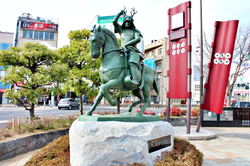 Ngay tại trung tâm thành phố, trước ga Ueda, bạn sẽ thấy tượng Sanada Yukimura - người thường được gọi là “chiến binh vĩ đại nhất Nhật Bản” (日本 一 の 兵 Hinomoto Ichi no Tsuwamono). Mặc dù bị lưu đày đến Kudoyama sau Trận chiến Sekigahara, ông đã trốn thoát và lại gia nhập Quân Phía Tây. Trong Trận vây thành Osaka mùa hạ (大坂夏の陣 О̄saka Natsu no Jin), quân của ông là cánh quân duy nhân thuộc Quân Phía Tây chủ động tấn công đại bản doanh của Tokugawa Ieyasu. Người ta nói rằng Sanada Yukimura là lãnh chúa mà Tokugawa Ieyasu e sợ nhất.